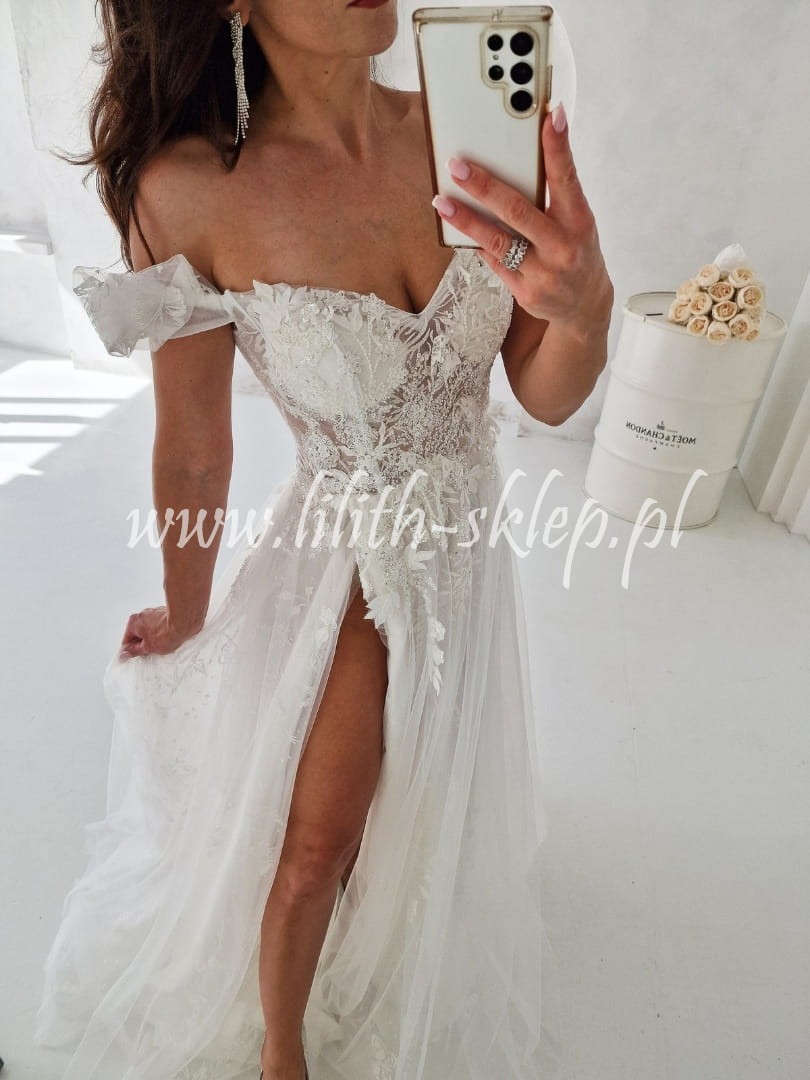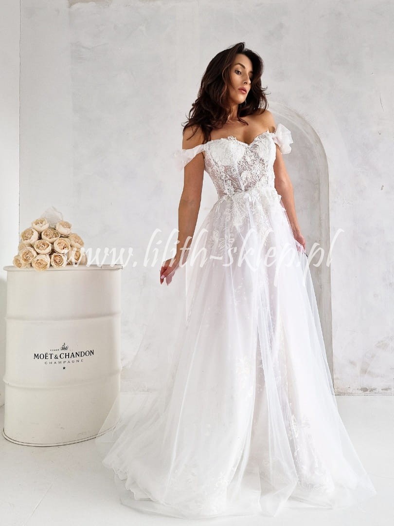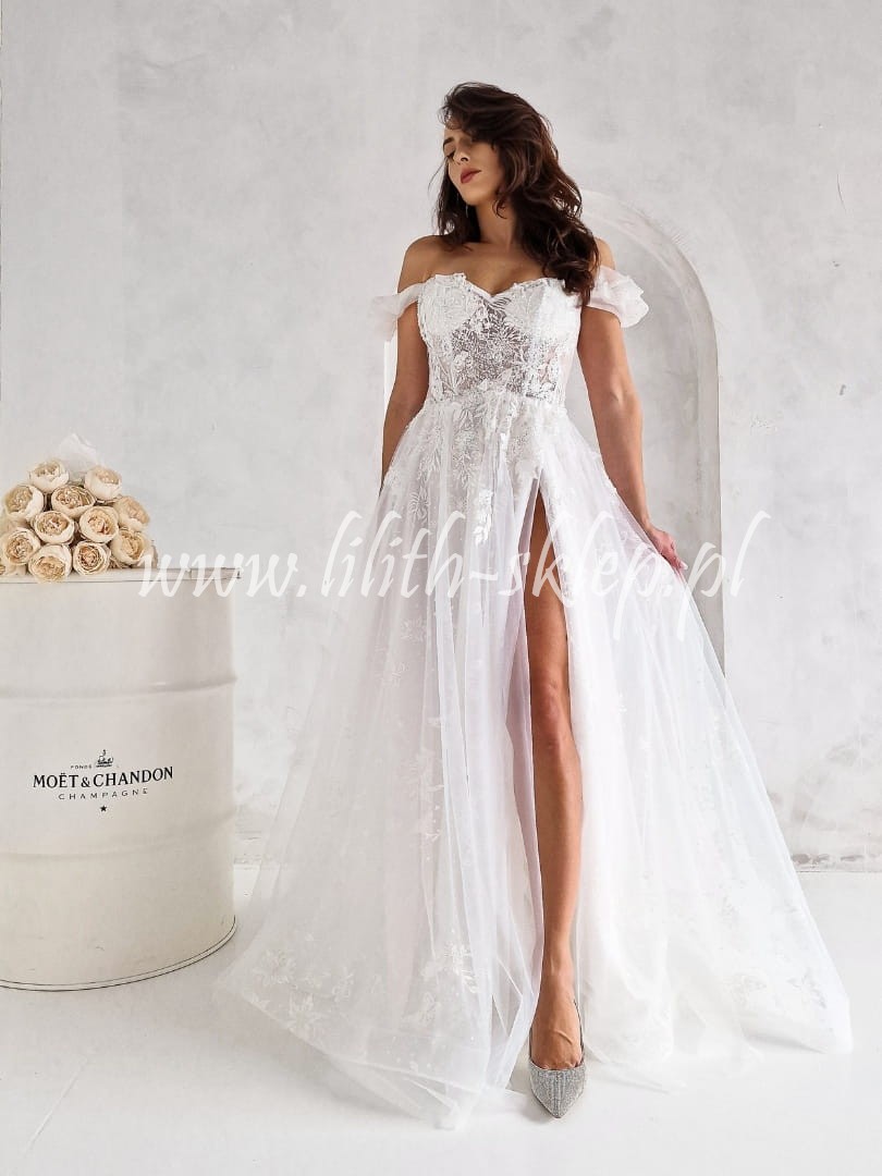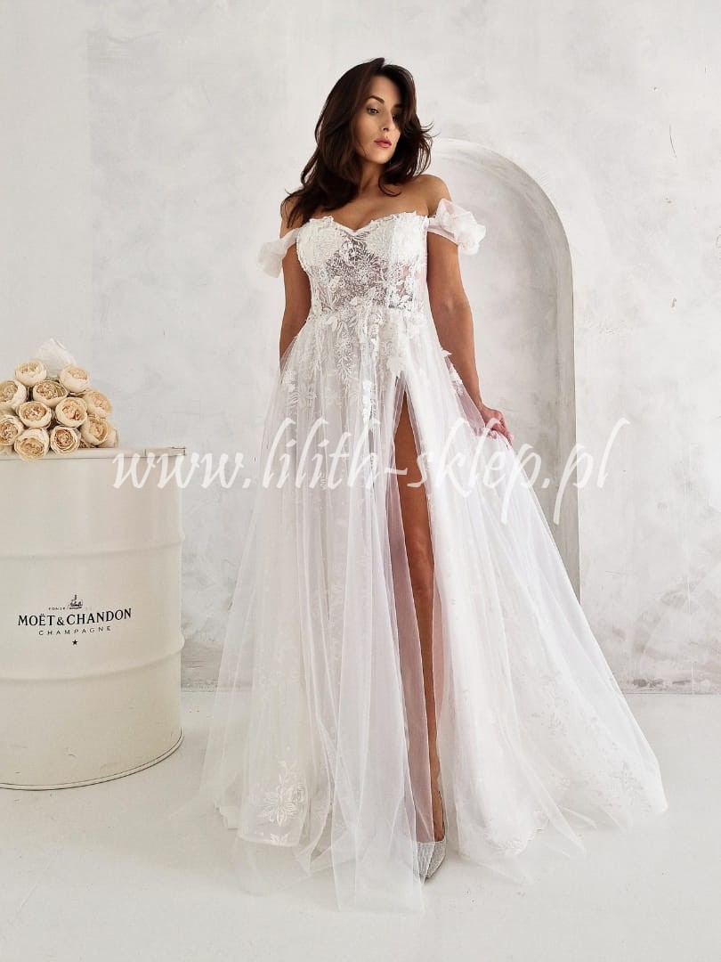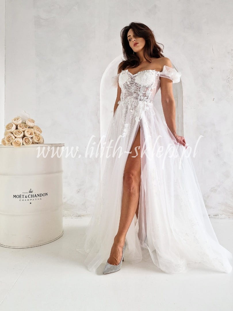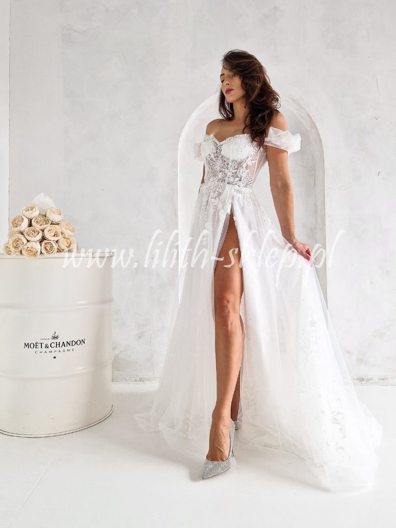 Selena -biała sukienka gorsetowa z tiulowym dołem
