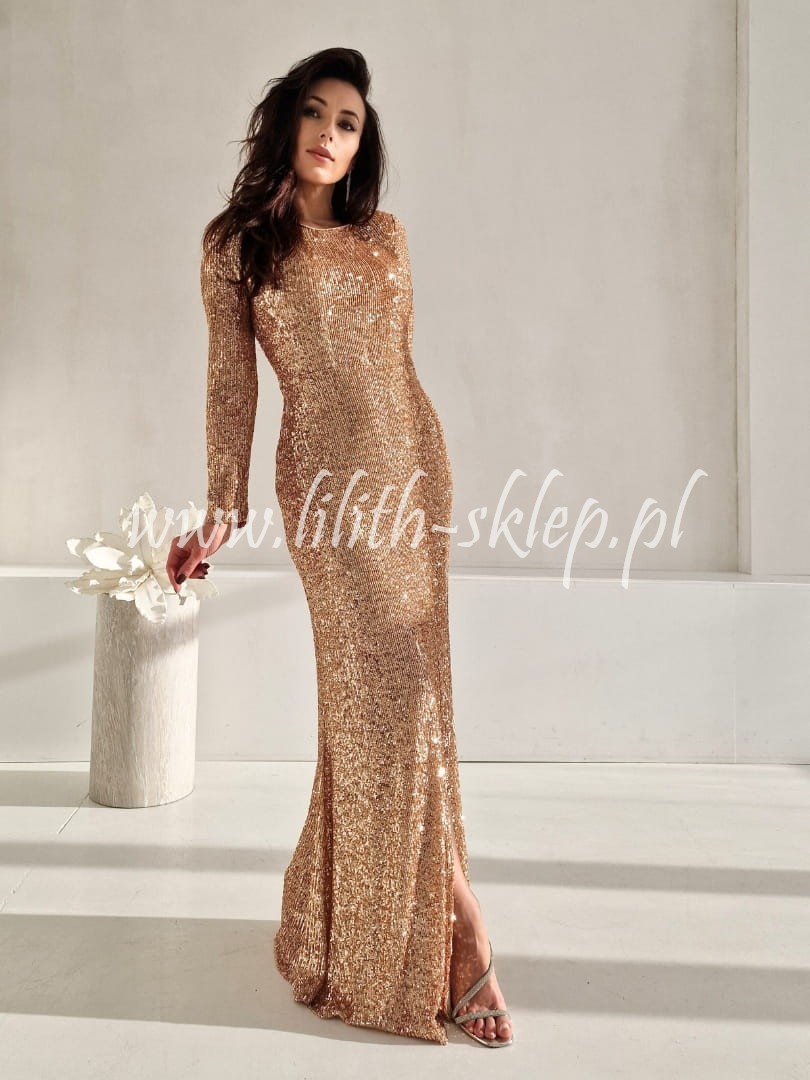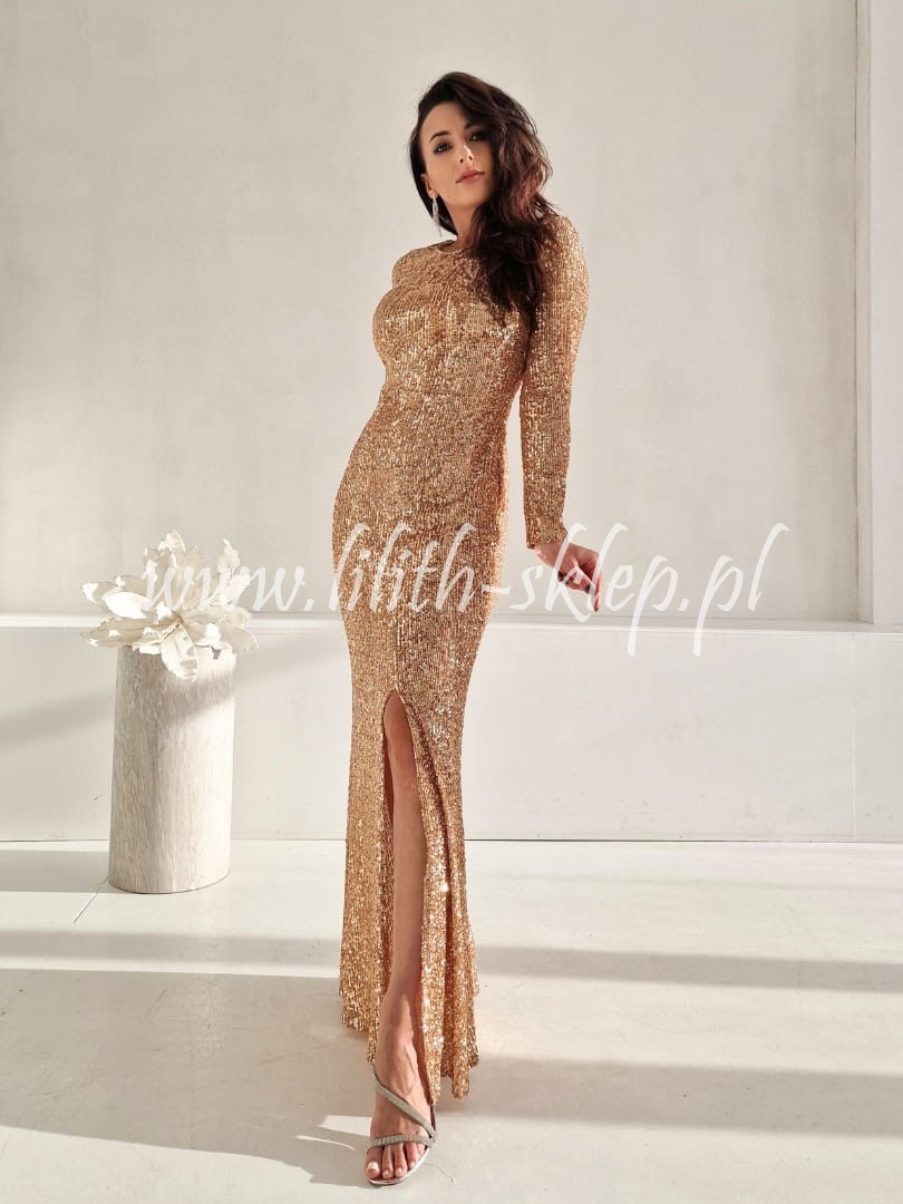 Gail- złota sukienka cekinowa z koronkowym tyłem