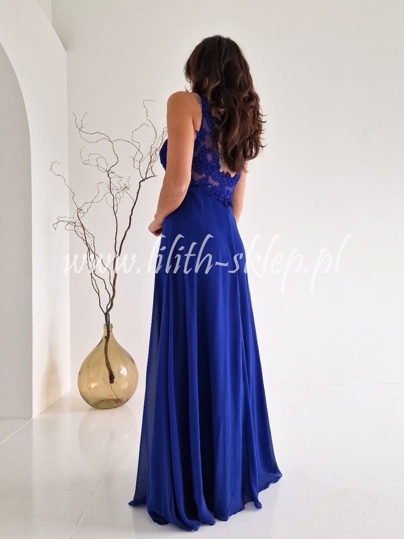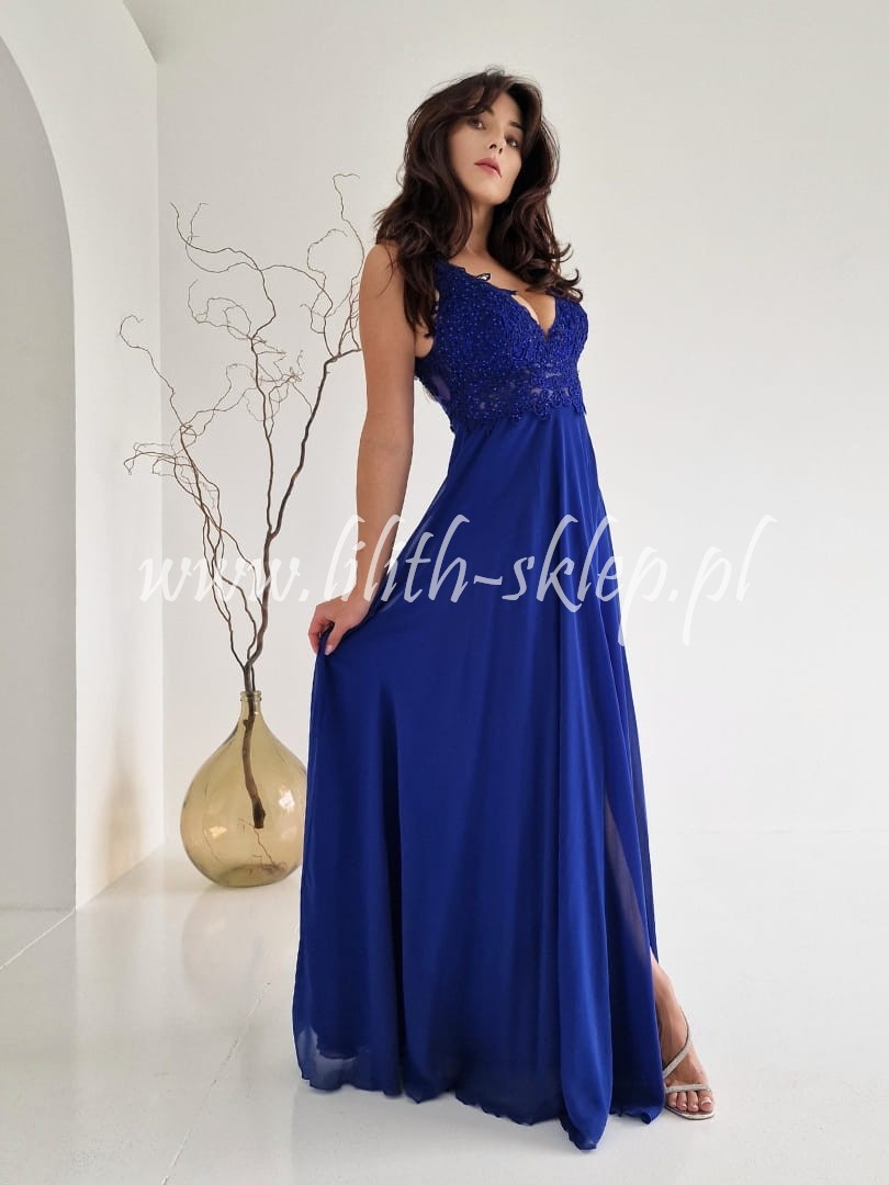 Monica -chabrowa sukienka maxi z rozcięciem na nodze