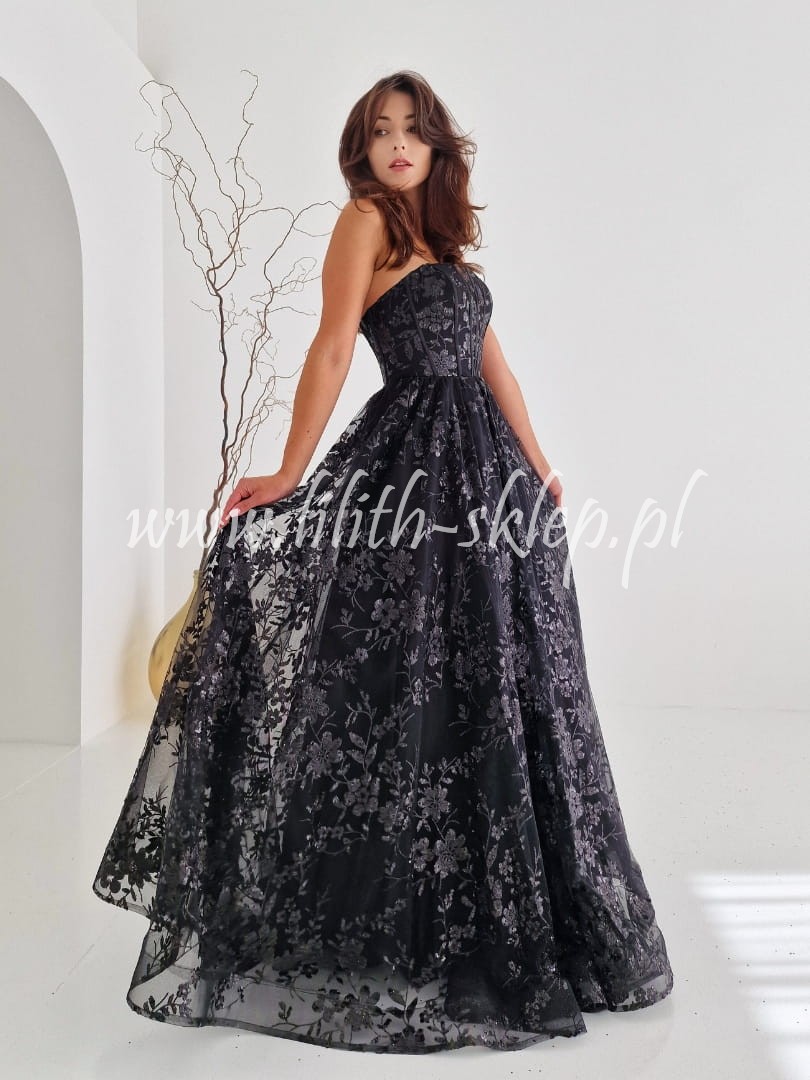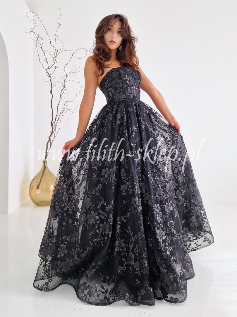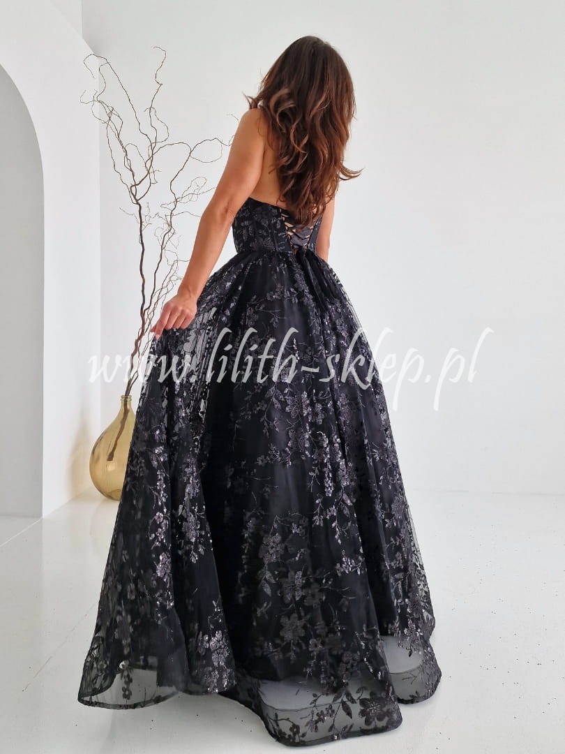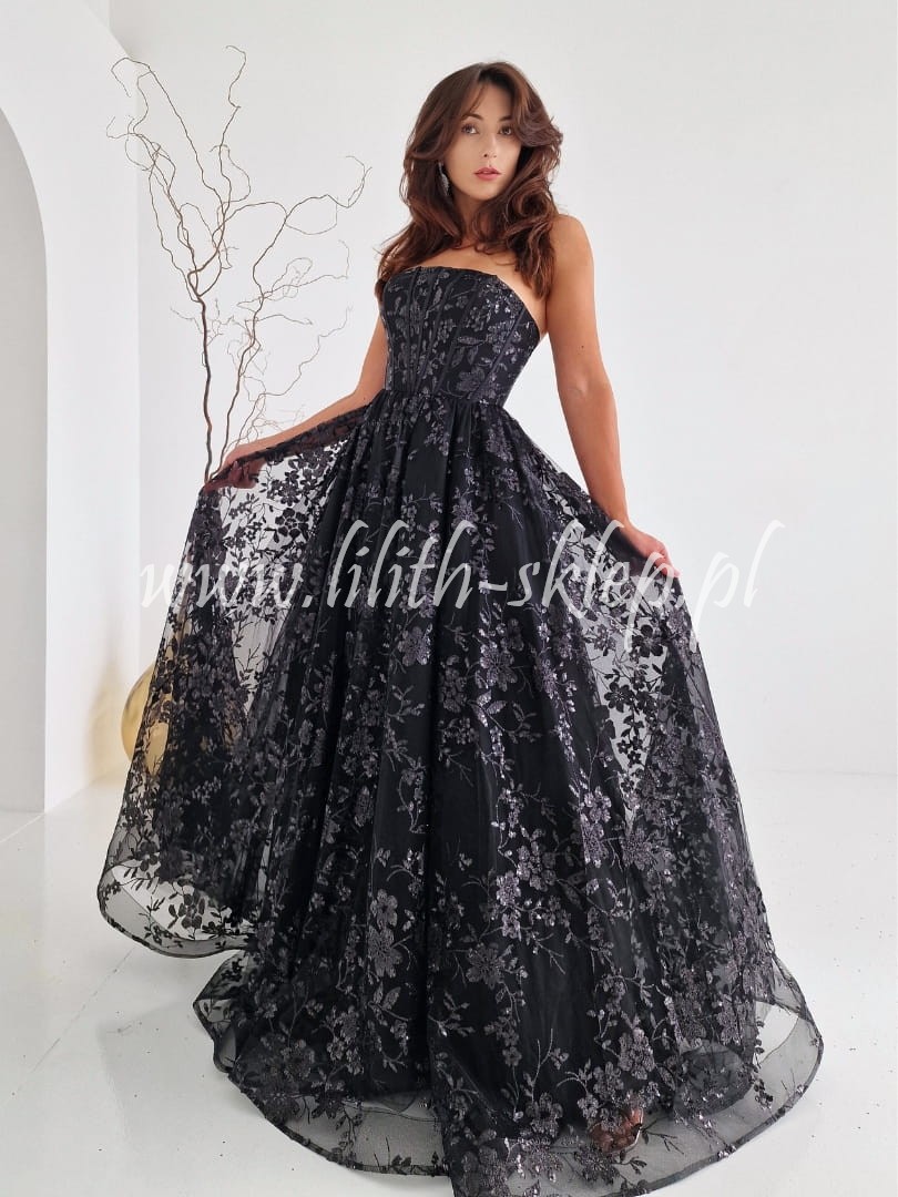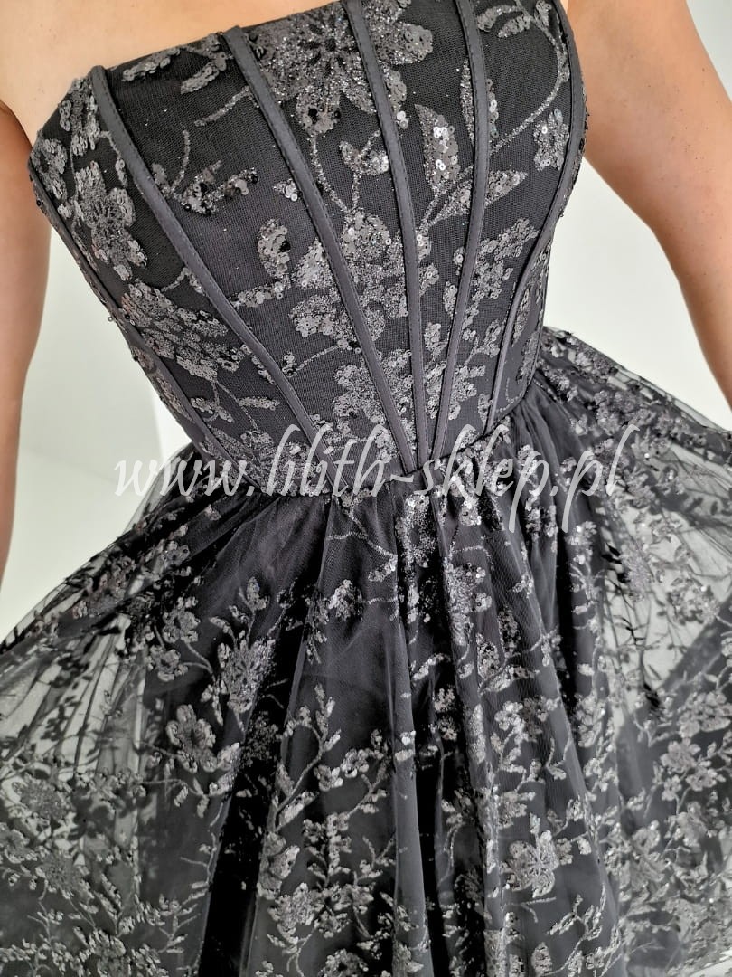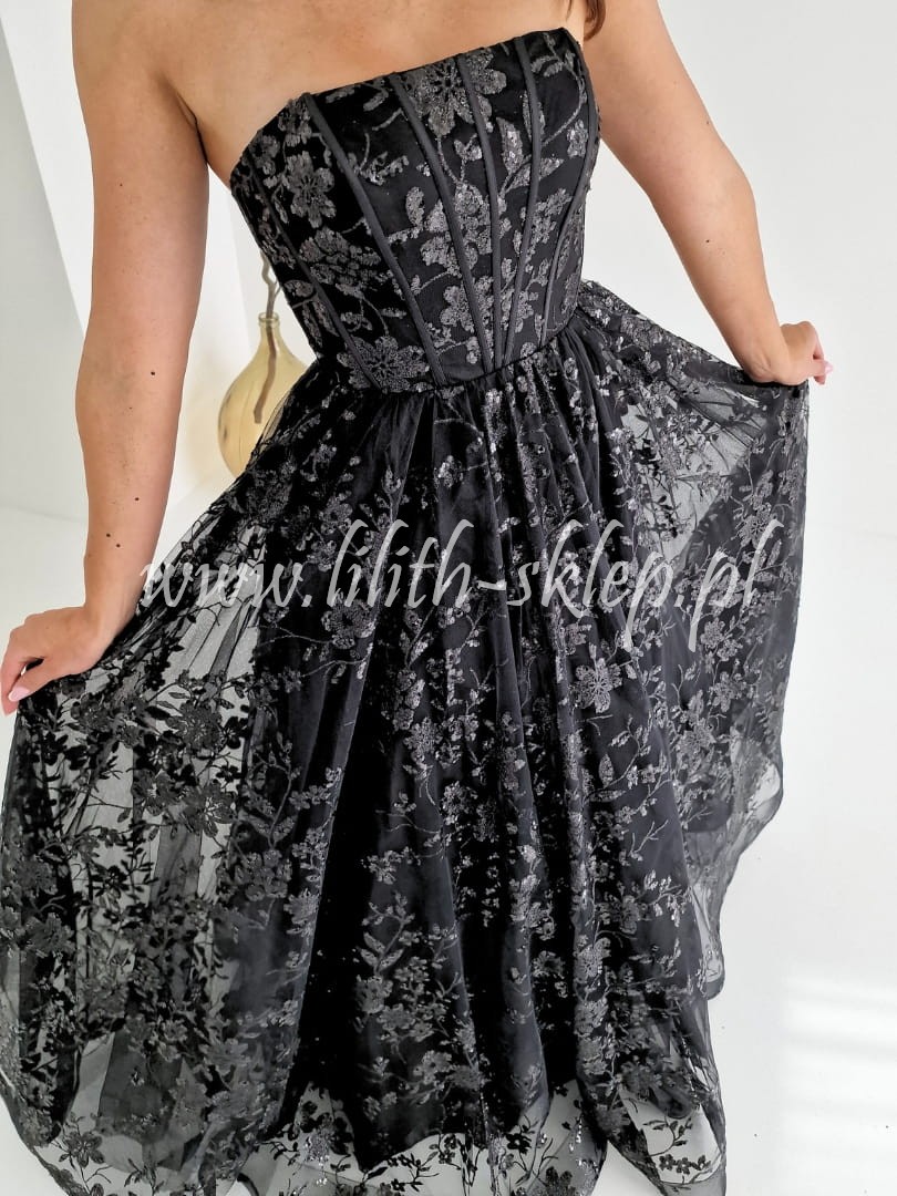 Natalie - czarna sukienka gorsetowa posypana brokatem
