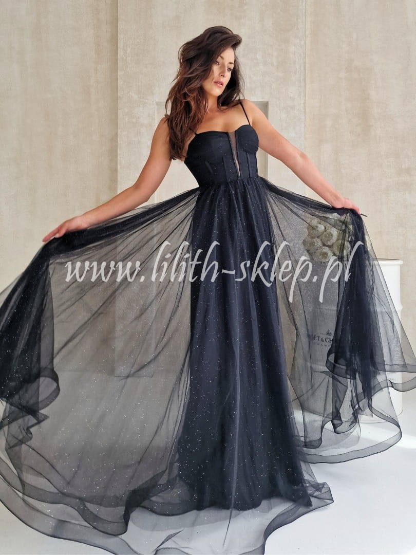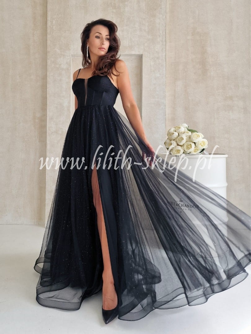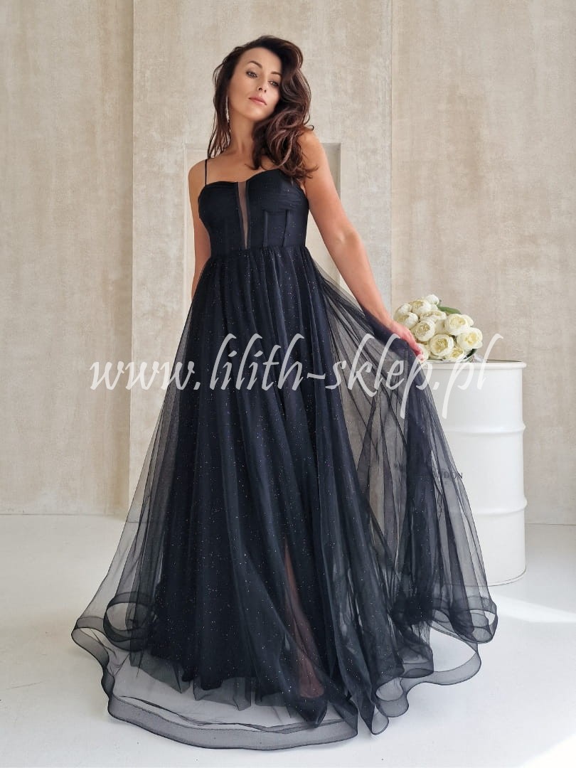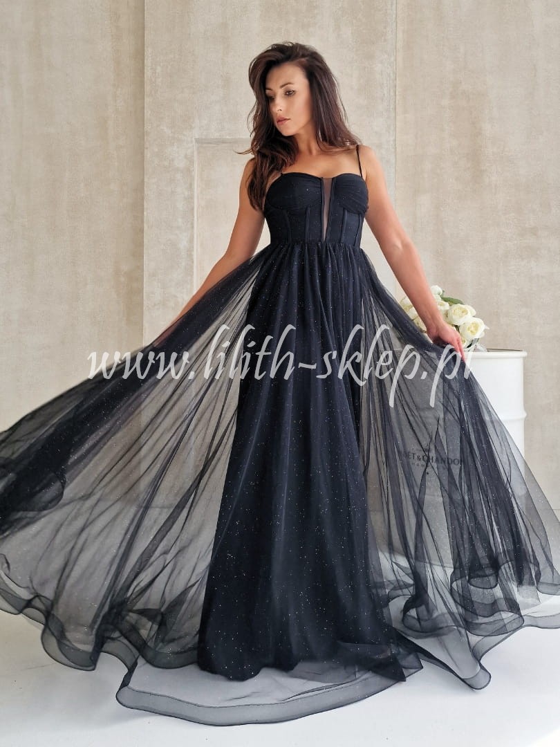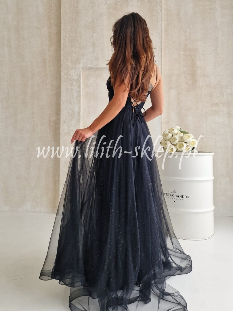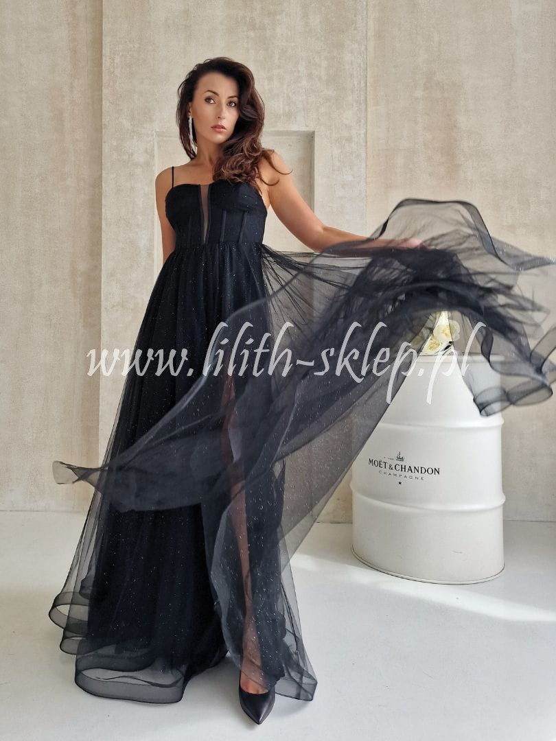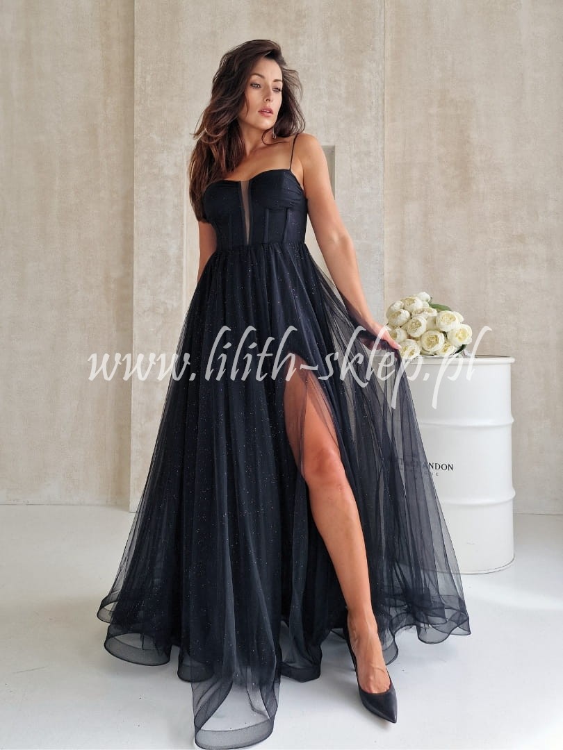 Ketnis -czarna sukienka gorsetowa z rozcięciem