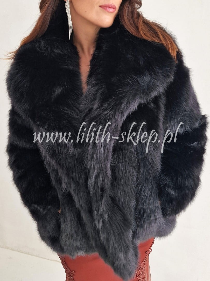 Czarne futerko damskie z kieszeniami