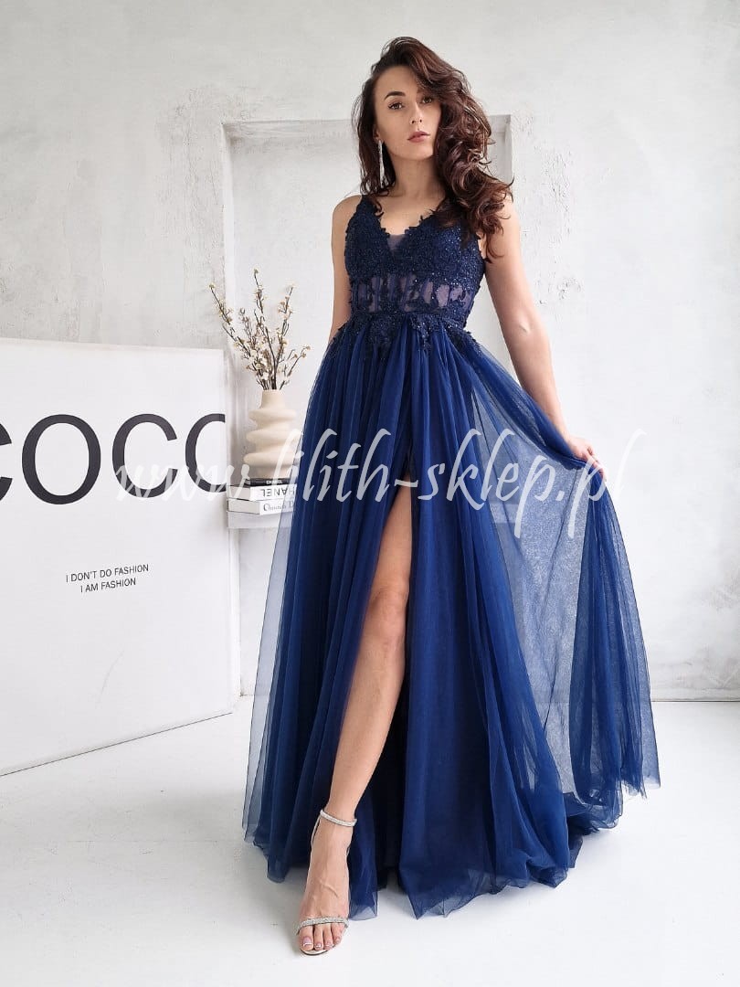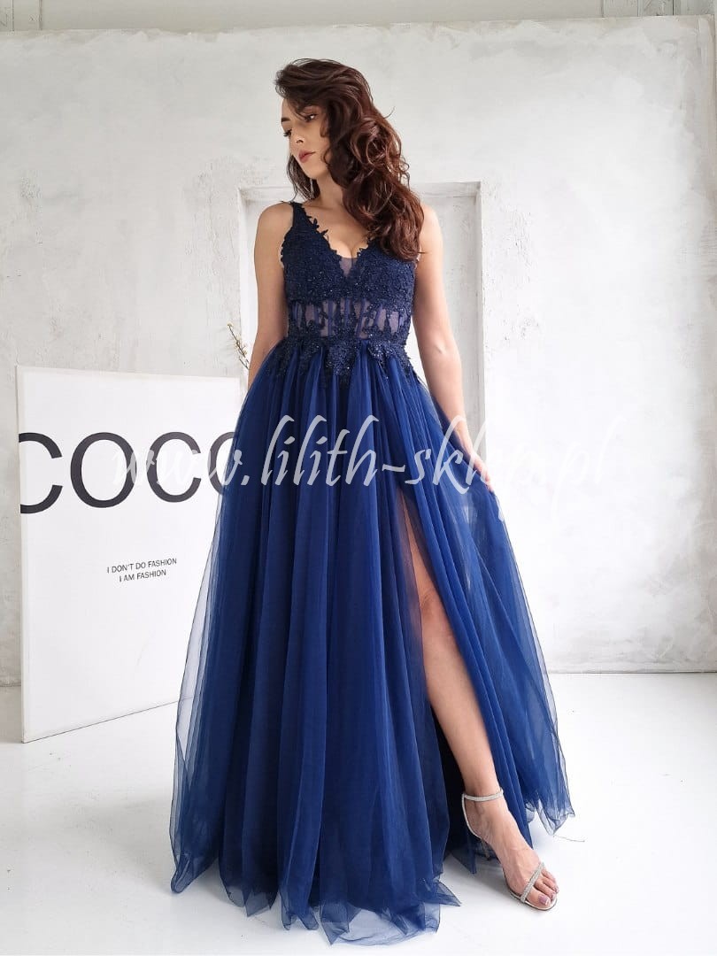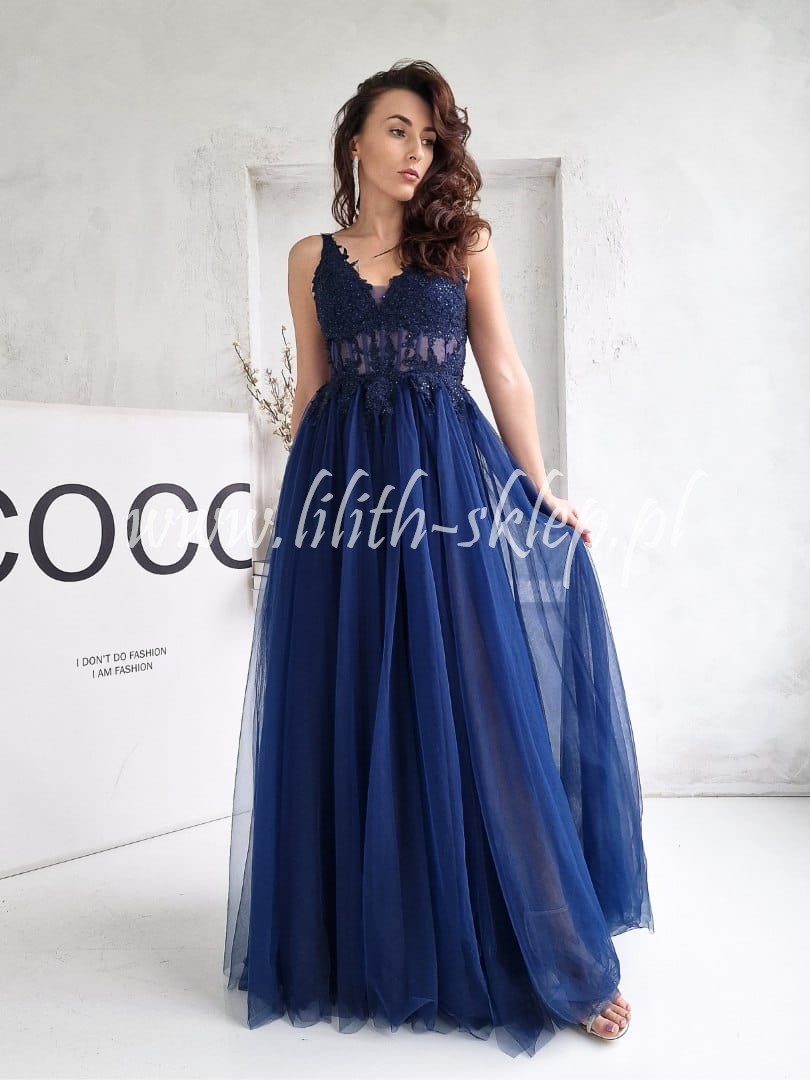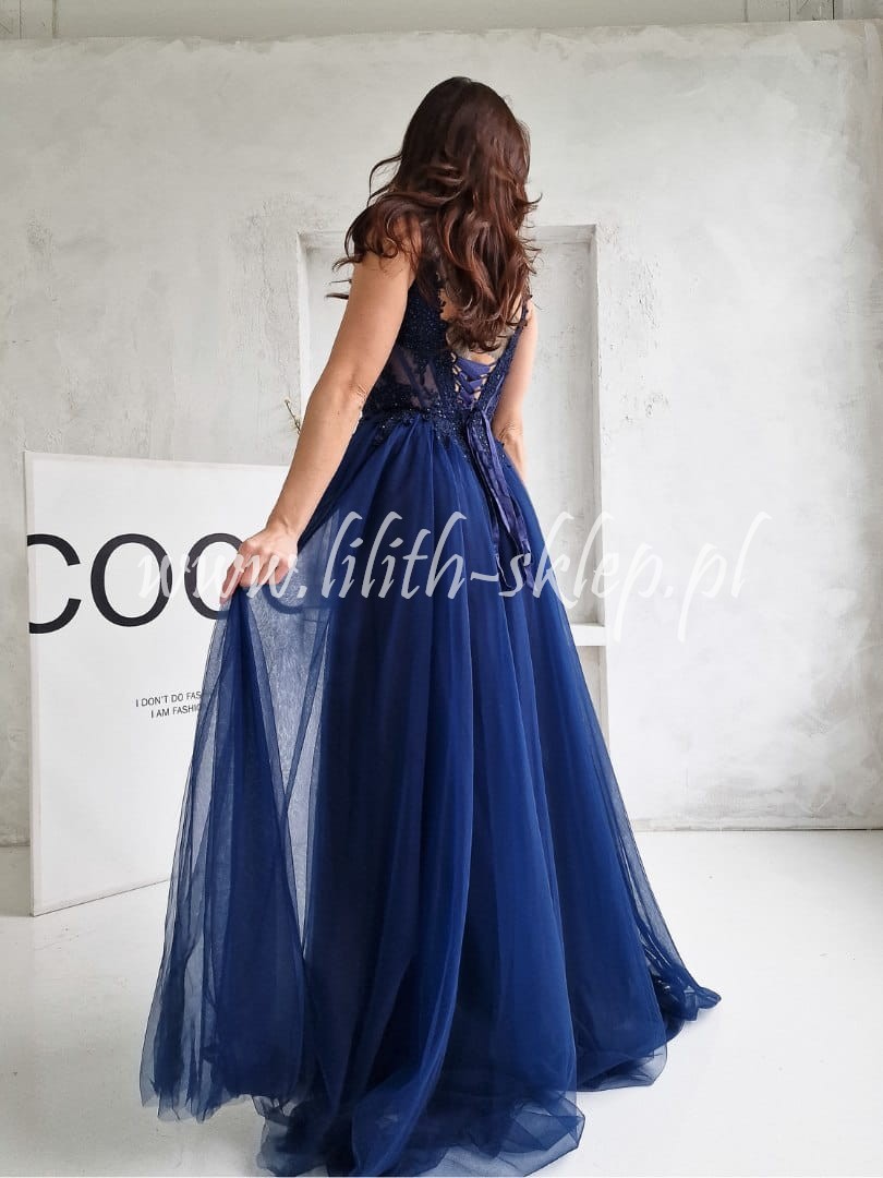 Callie -granatowa sukienka gorsetowa z tiulowym dołem