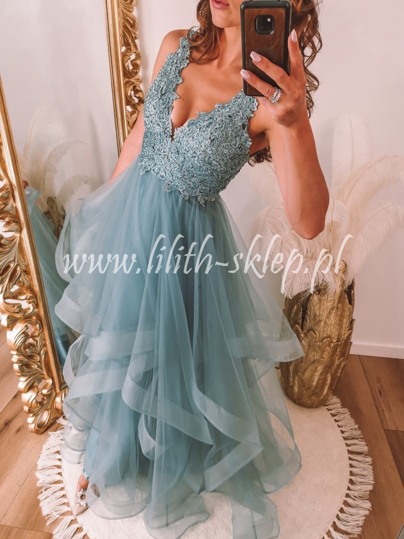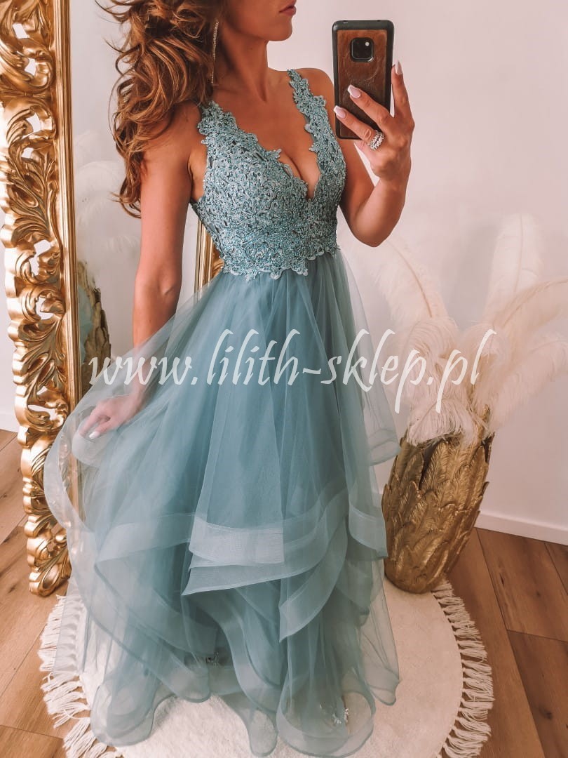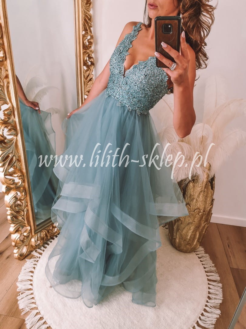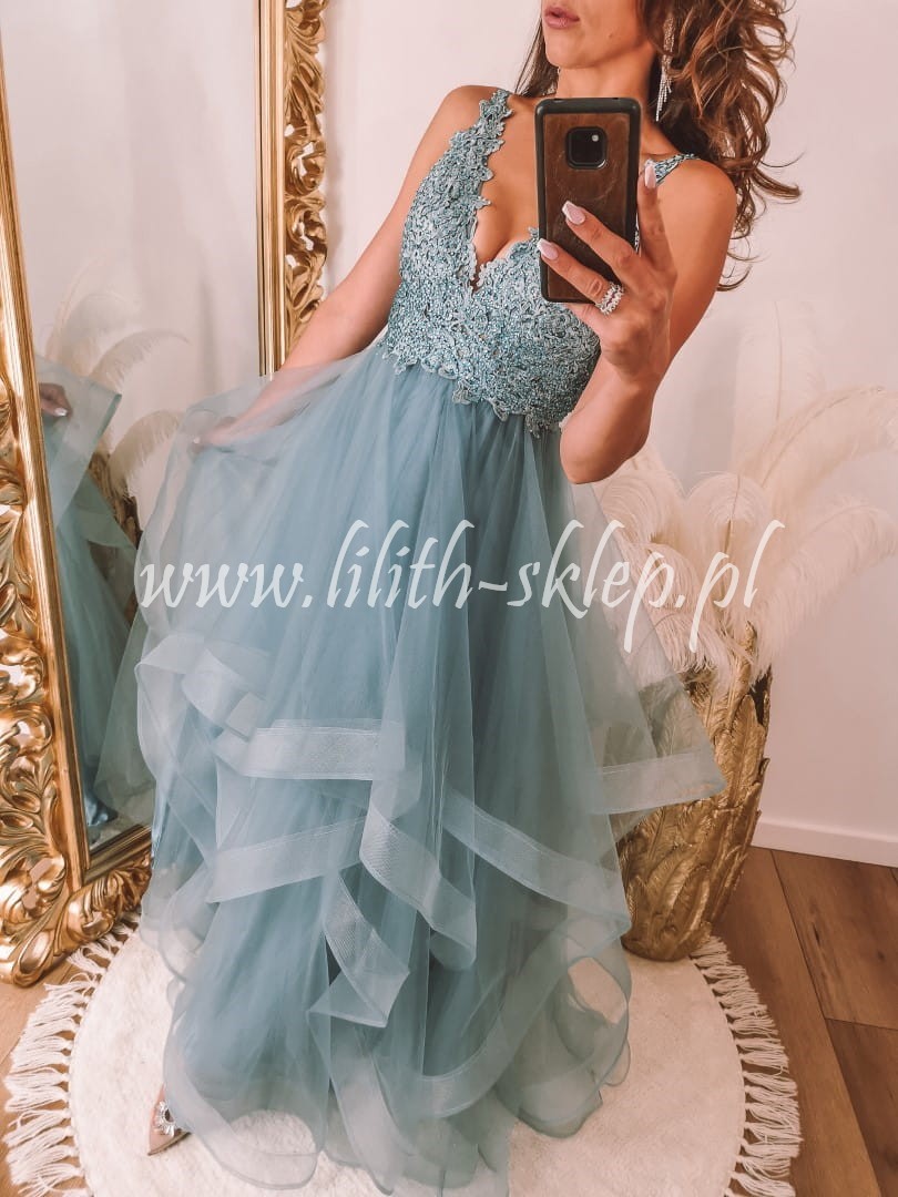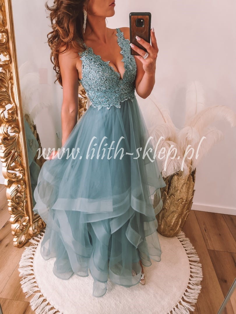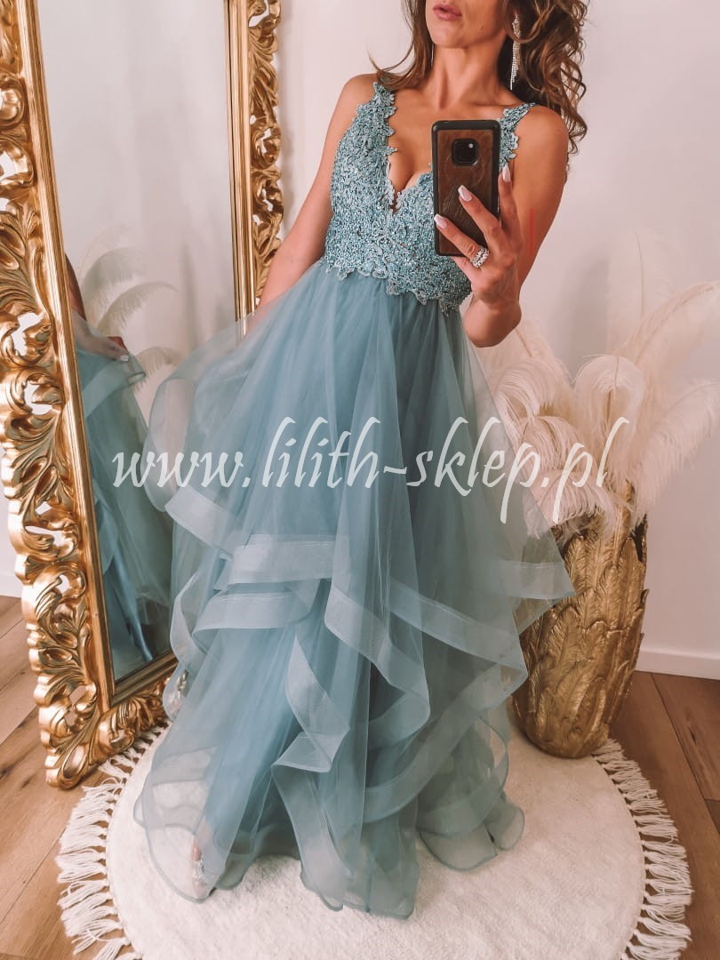 Carla -morska sukienka maxi z asymetrycznym dołem