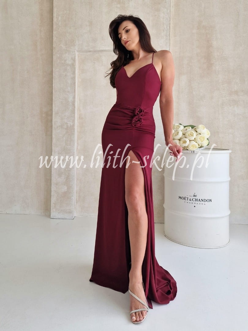 Tessa- bordowa sukienka z odkrytymi plecami i trenem