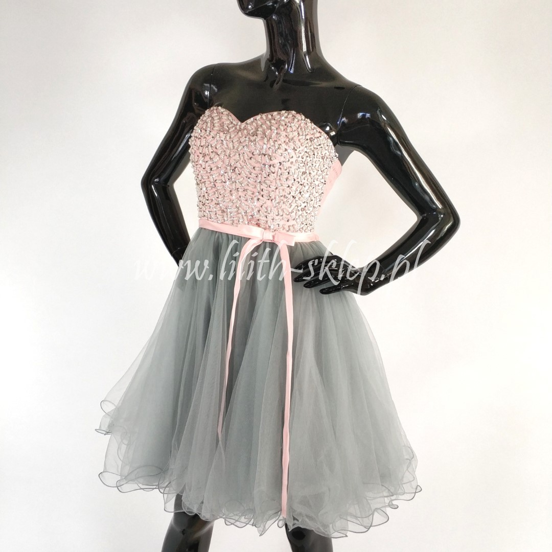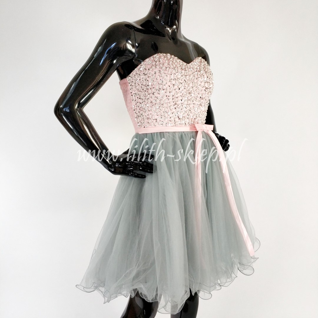 Aytona -sukienka gorsetowa, tiulowa, różowo szara
