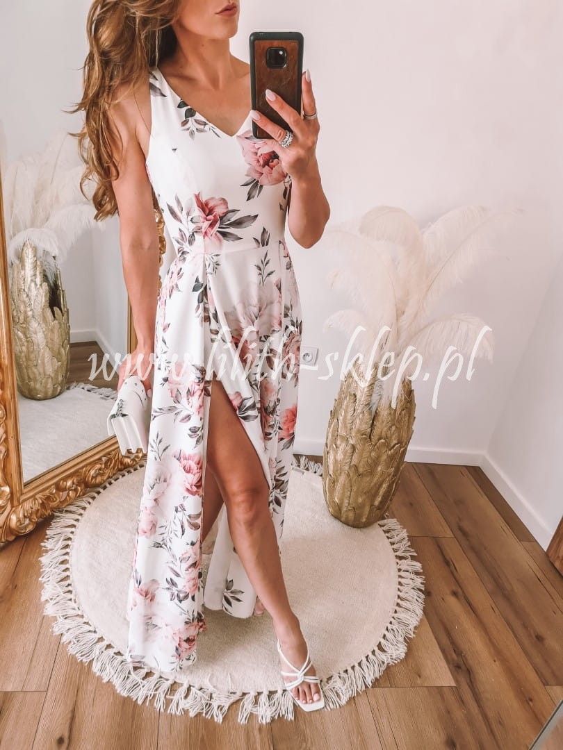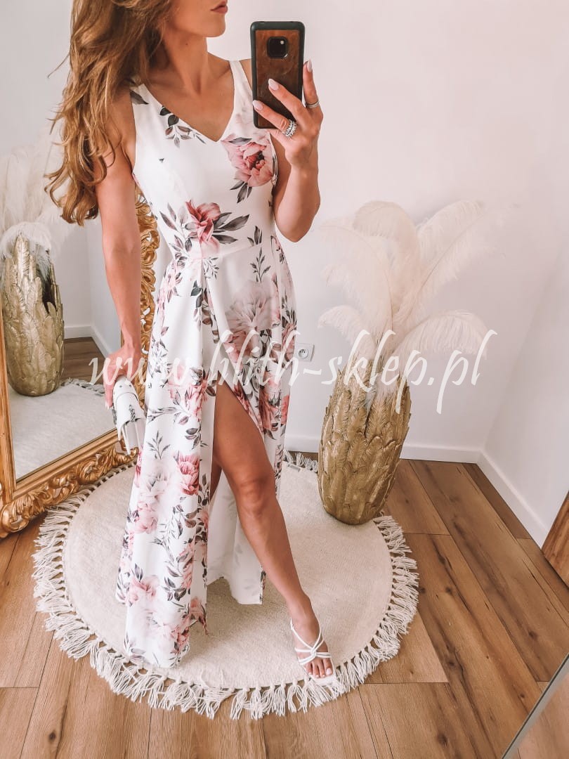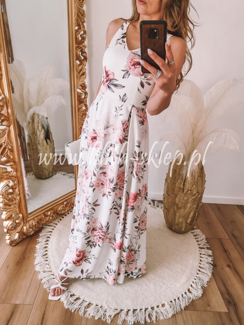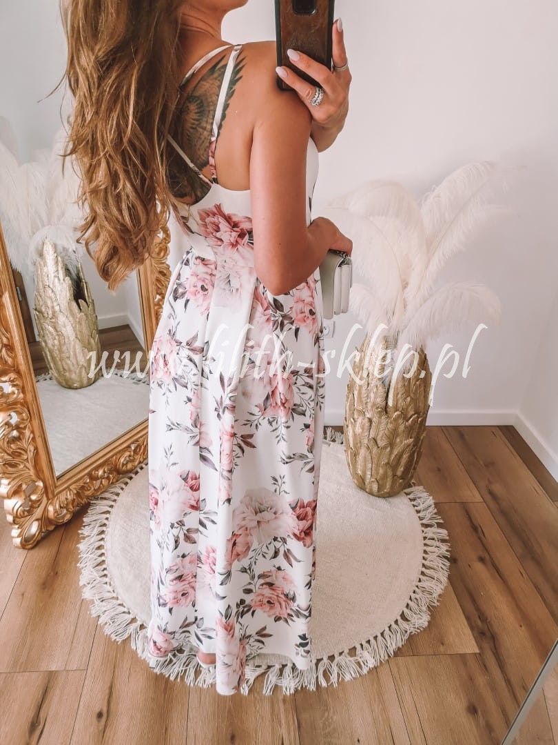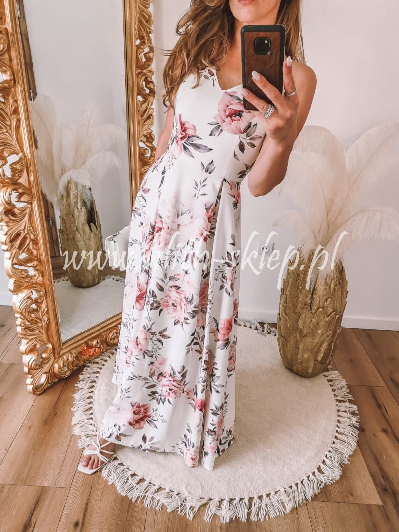 Sukienka maxi na cienkich ramiączkach w kwiaty