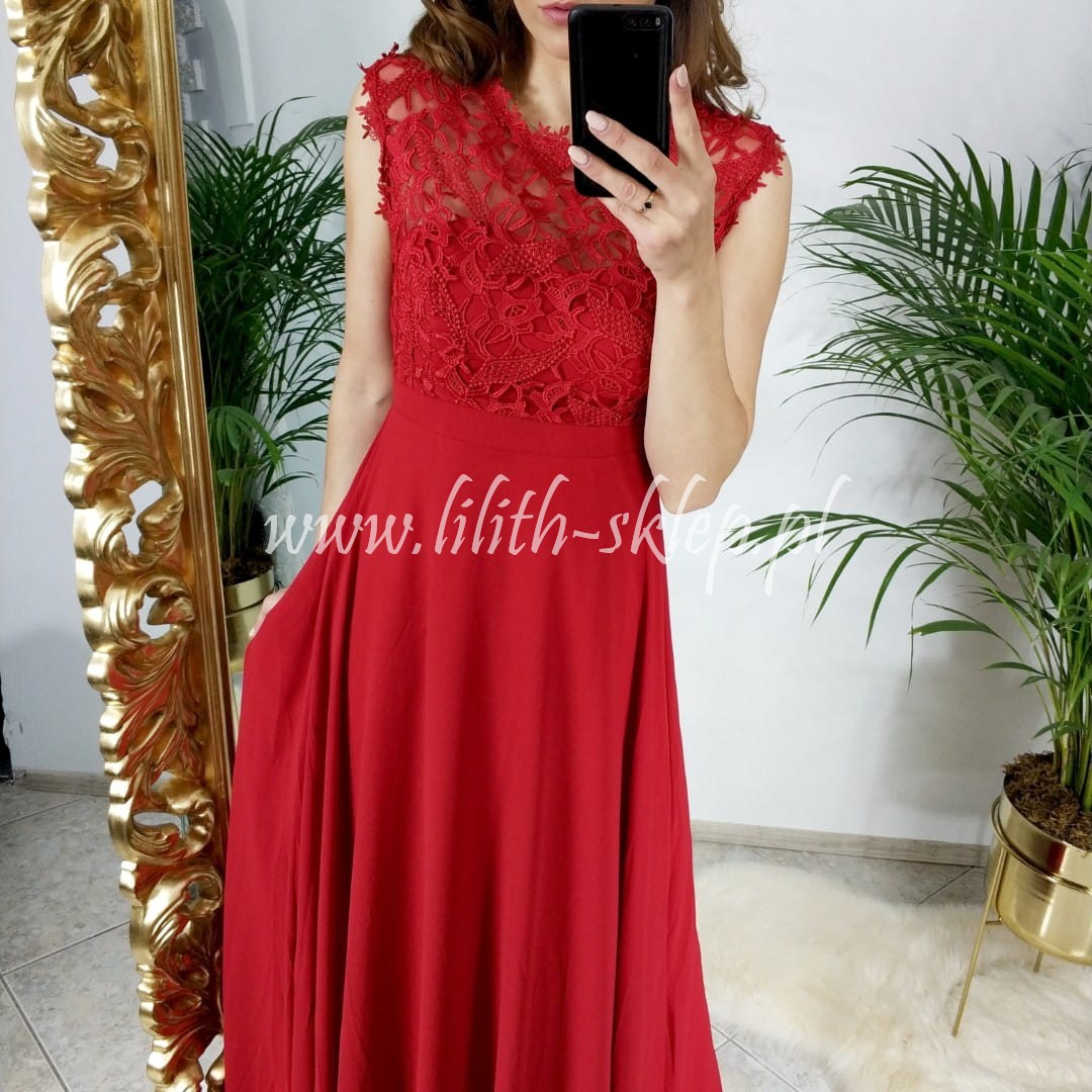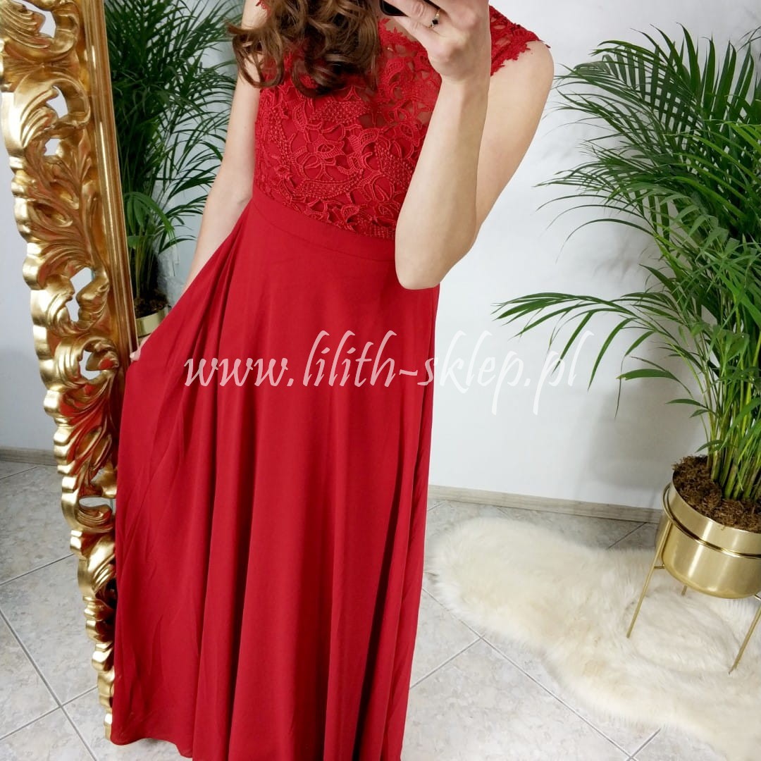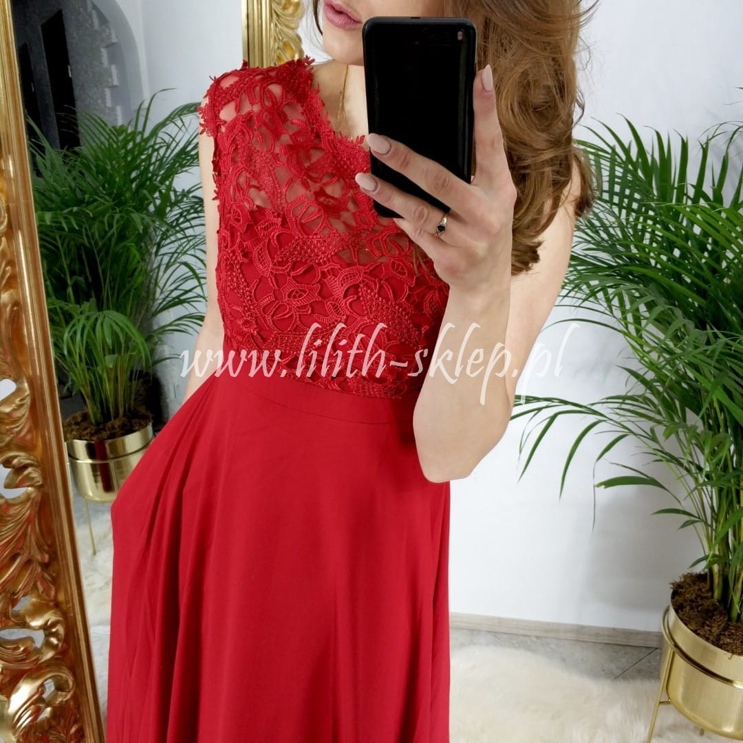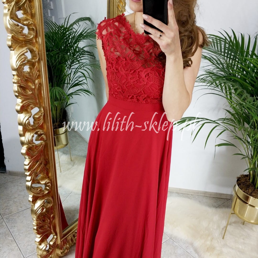 Berk -sukienka maxi z wycięciem na plecach, czerwona